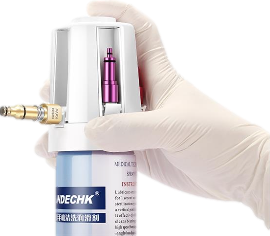 Po nałożeniu adaptera na olej mamy możliwość podłączenia do niego końcówek stomatologicznych. Urządzenie ułatwia konserwację poprzez dozowanie odpowiedniej dawki oleju.