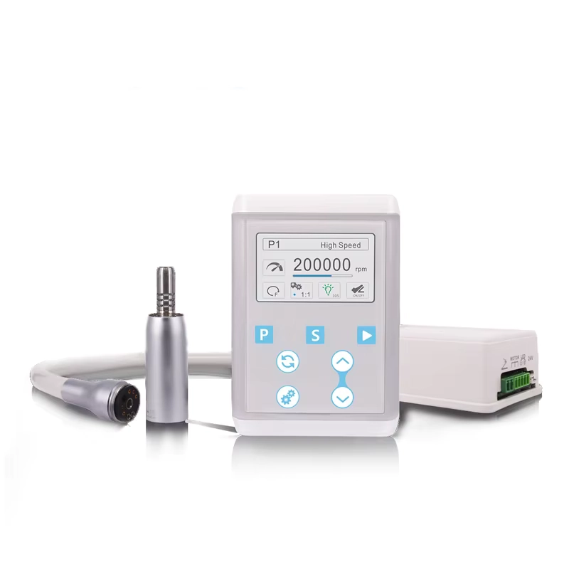 Nowoczesny mikrosilnik elektryczny typu brushless z czytelnym wyświetlaczem LCD, regulowanym momentem obrotowym i oświetleniem LED. Kompatybilny z kątnicami zgodnymi z ISO3964. Przeznaczony do preparacji, opracowywania ubytków, polerowania oraz prac protetycznych.