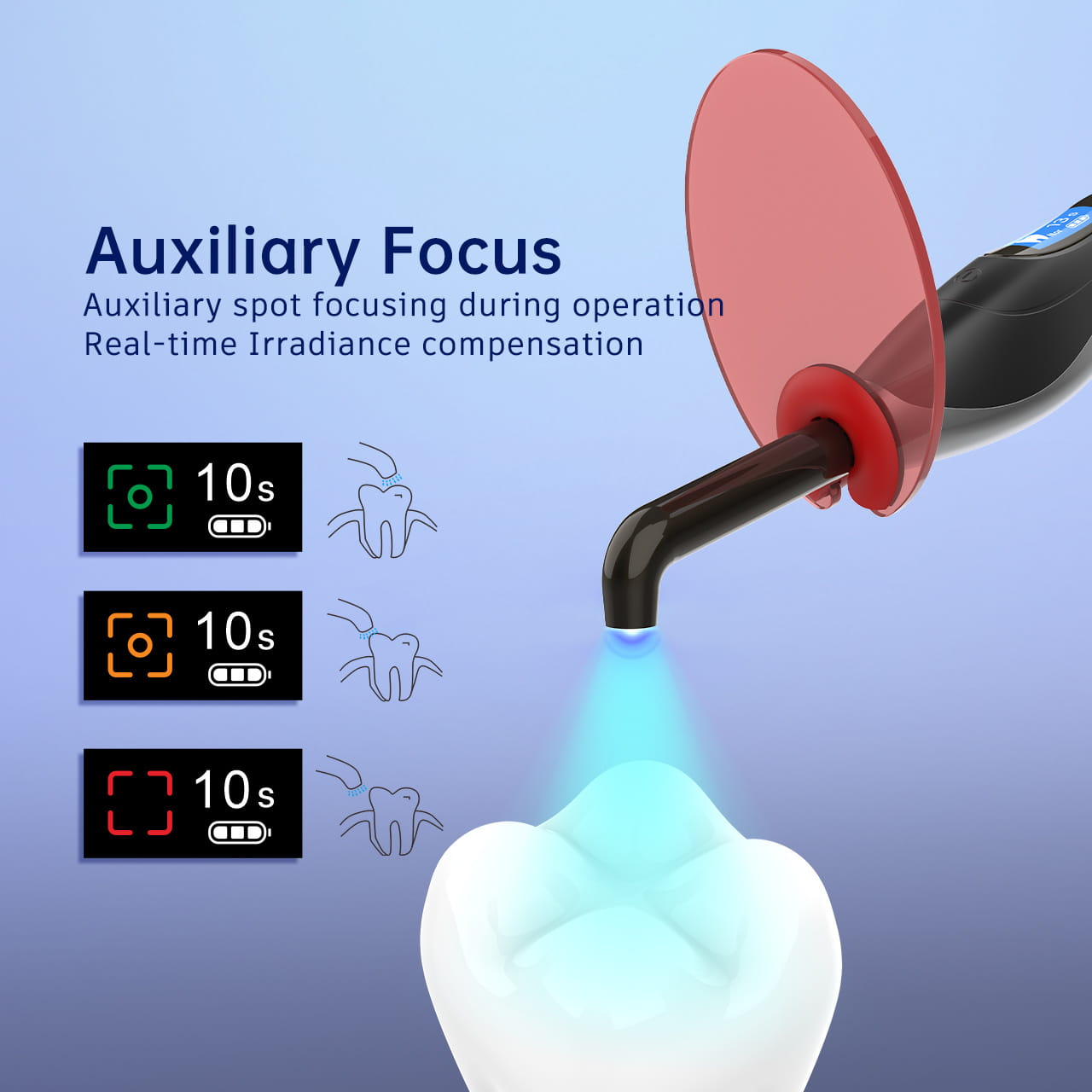 - Funkcja Auxiliary Focus: Pomaga precyzyjnie skierować światło na leczony obszar.