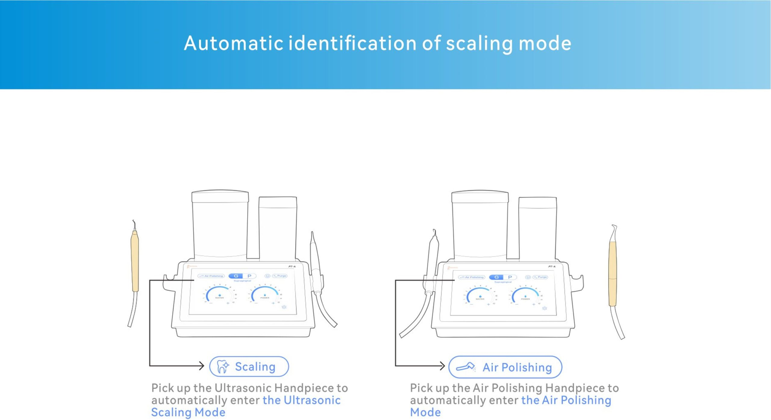 Woodpecker PT-A to innowacyjne urządzenie, które integruje funkcje skalera ultradźwiękowego i piaskarki, umożliwiając kompleksowe zabiegi profilaktyczne w gabinecie stomatologicznym. Dzięki 12-stopniowej regulacji mocy oraz automatycznemu rozpoznawaniu końcówek, urządzenie dostosowuje się do indywidualnych potrzeb każdego pacjenta, zapewniając skuteczność i komfort podczas zabiegów.