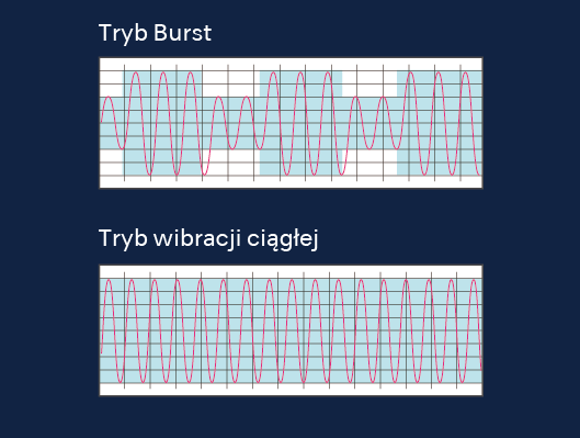 - Tryb Burst – chwilowe zwiększenie mocy dla bardziej wymagających zabiegów.