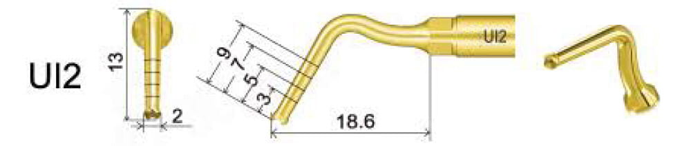 OPIS: Końcówka implantologiczna zakończona kulką o średnicy 2mm, z irygacją