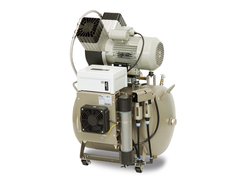 Bezolejowy kompresor EKOM serii DK50 2V/50 jest źródłem czystego, ciśnieniowego powietrza przeznaczonym do napędu sprzętu i urządzeń stomatologicznych. Swoimi parametrami oraz wielkością zbiornika 50 litrów nadaje się do zasilania dwóch unitów stomatologicznych lub urządzeń w laboratoriach dentystycznych. Powietrze produkowane przez bezolejowe kompresory, zapewnia wyższy poziom higieny i jakości prac dentystycznych i nie zanieczyszcza środowiska pracy substancjami obcymi.