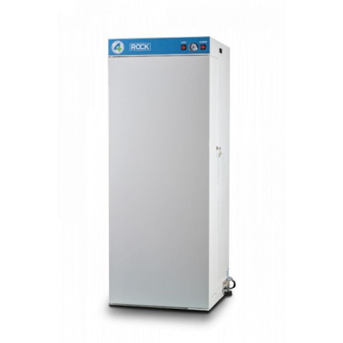 SMART STATION to elegancka szafa tłumiąca dźwięk, która pomieści sprężarkę i pompę ssącą od FourTek. Urządzenia są umieszczone jedno na drugim wewnątrz szafy, co dodatkowo oszczędza miejsce w gabinecie.