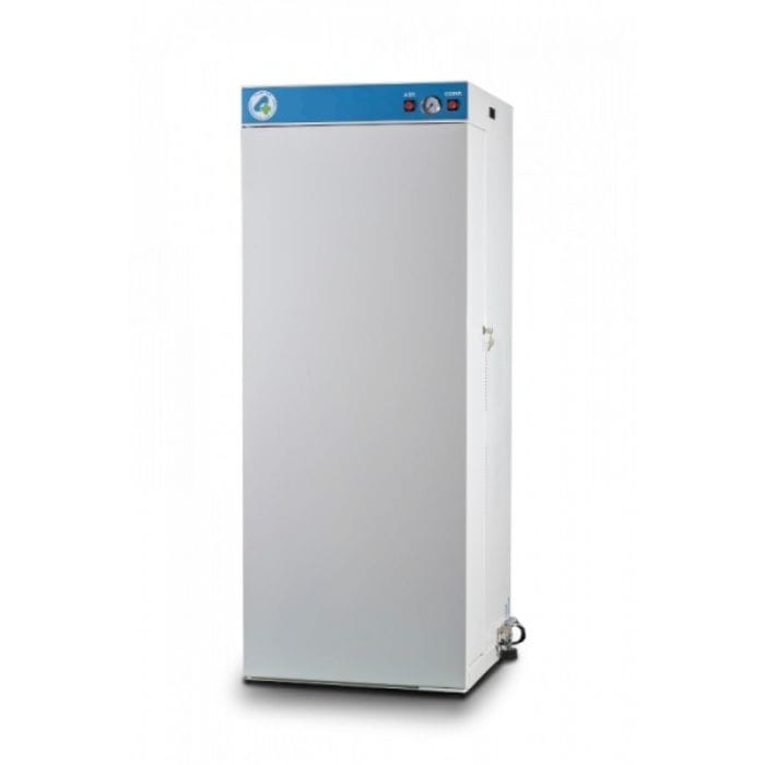 Zestaw FourTek STONE 2E, w skład którego wchodzi sprężarka Mirage 130E oraz mokra pompa ssąca RAIN2, jest elegancko umieszczony w estetycznej szafie wyciszającej SMART STATION. Urządzenia są zainstalowane jedno nad drugim wewnątrz szafy, co pozwala na oszczędność miejsca w gabinecie.