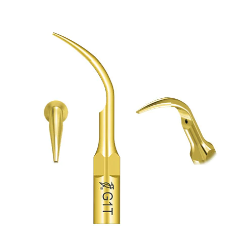 Końcówka G1T przeznaczona do skalingu naddziąsłowego. Do usuwania kamienia z zębów przednich i szyjek zębów trzonowych