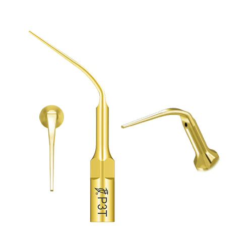 Końcówka P3T przeznaczona do skalingu poddziąsłowego. Do usuwania kamienia z powierzchni poddziąsłowych i irygacji głębokich kieszonek dziąsłowych.
