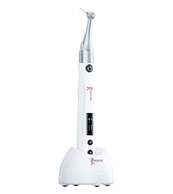 Jego zaawansowany silnik bezszczotkowy zapewnia cichą pracę, minimalne nagrzewanie oraz dziesięciokrotnie dłuższą żywotność w porównaniu z tradycyjnymi silnikami szczotkowymi. Dzięki możliwości połączenia z lokalizatorem wierzchołków Woodpex V, urządzenie oferuje doskonałą widoczność kanału na wyświetlaczu LCD, co zwiększa precyzję i efektywność leczenia endodontycznego.