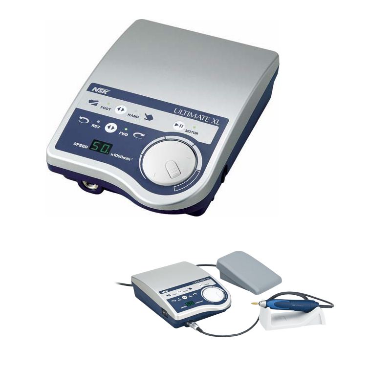 Mikrosilnik ULTIMATE XL-GT, protetyczny, bezszczotkowy, sterowanie nożne i ręczne, moc 250 W, 50 000 obr./min. Prostnica UMXL-TM.
