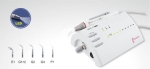 Rączka wykonana z trwałych materiałów zapewnia długotrwałą i wygodną pracę. Specjalna budowa eliminuje niepożądane drgania oraz niepotrzebne hałasy. Rączka wykonana w nowym desing oraz z podświetleniem LED . Urządzenie wykonane z tworzywa sztucznego najwyższej jakości posiadające niezbędne certyfikaty jakościowe (FDA / NSF akceptowalne zarówno w Europie jak również w USA). Rączka połączona jest z urządzeniem sterującym miękkim sylikonowym przewodem ułatwiającym pracę. Automatyczna praca urządzenia pozwala na optymalną pracę. Skaler wyposażony we wszystkie niezbędne funkcje takie jak : saling, perio, endo. Jego kompaktowe wymiary pozwalają na optymalne zamontowanie w unicie. Instalacja cechuje się również prostotą i szybkością.