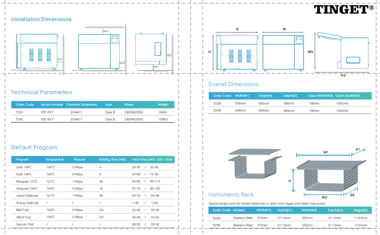 Dane techniczne autoklawu Tinget Lamia 45.