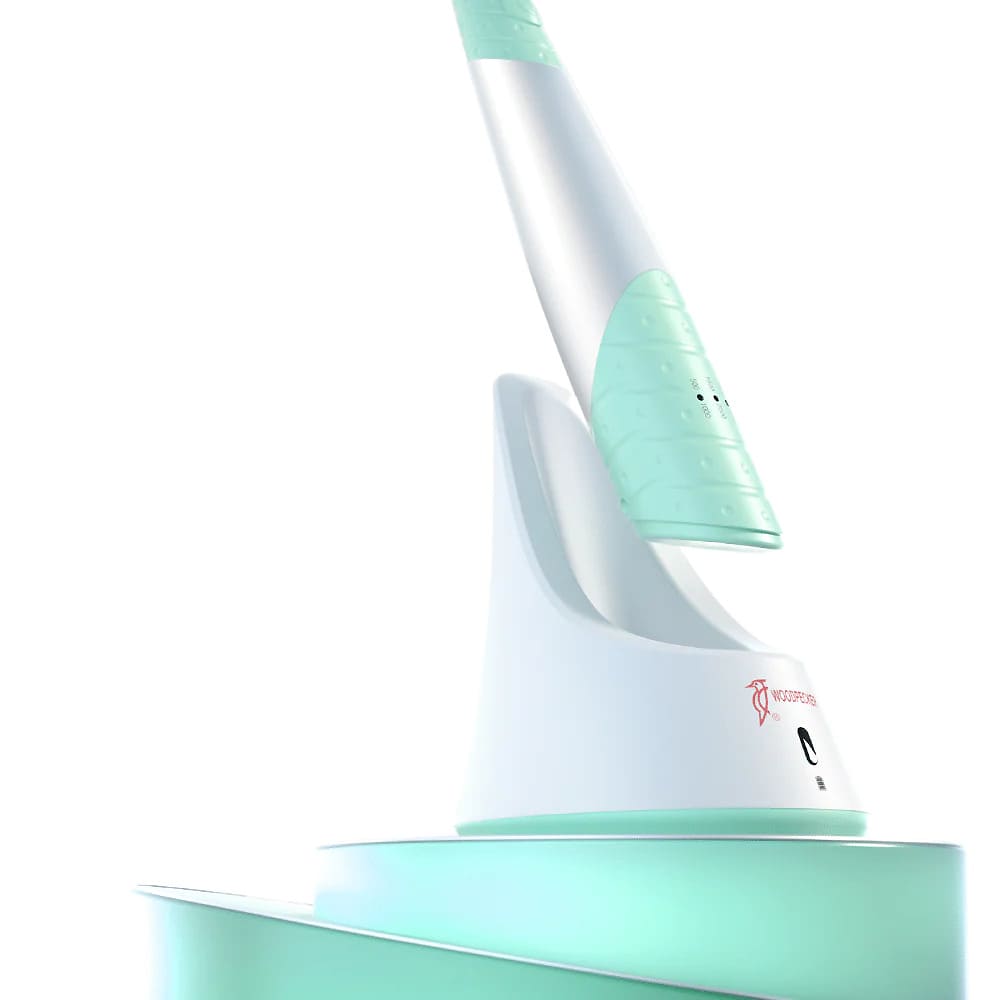 Bezprzewodowa koncepcja idzie tu w parze z ładowaniem bezprzewodowym. Rękojeść odkładana jest na stację, co upraszcza codzienną obsługę i ogranicza liczbę przewodów na blacie. To rozwiązanie praktyczne i wygodne organizacyjnie, szczególnie w gabinetach, które chcą utrzymać bardziej uporządkowaną przestrzeń roboczą.
